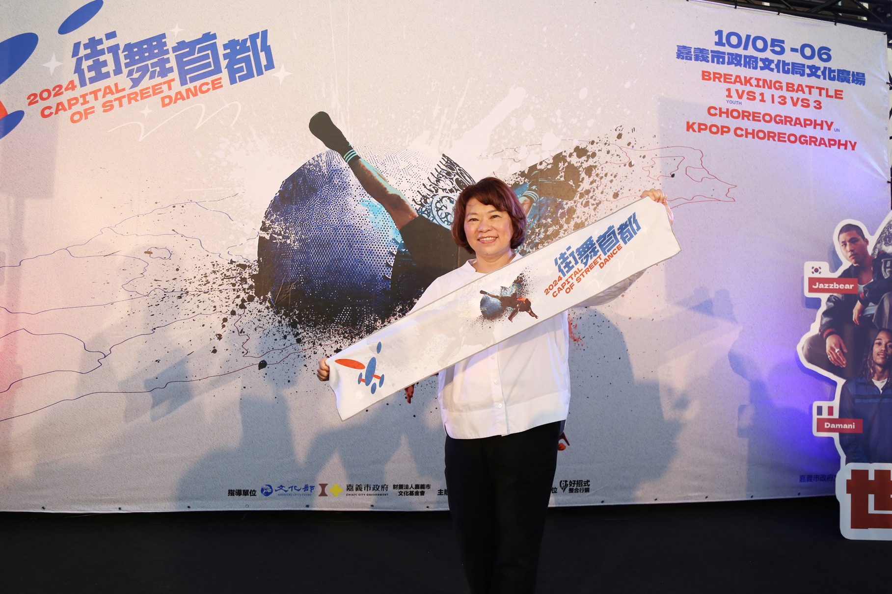 「2024街舞首都」啟動儀式。黃敏惠表示,街舞運動不僅是一種舞蹈形式、更是一種文化,近年來有著越來越強大的量能,霹靂舞更成為本屆奧運比賽項目,而今年「2024街舞首都」特別選在巴黎奧運後舉辦,延續這股熱潮為我們的國手們喝采。這次將邀請台灣第一位奧運霹靂舞項目國手孫振來到嘉義市,帶領台灣好手們與國際級專業選手舞技切磋,藉此交流彼此的舞蹈風格。