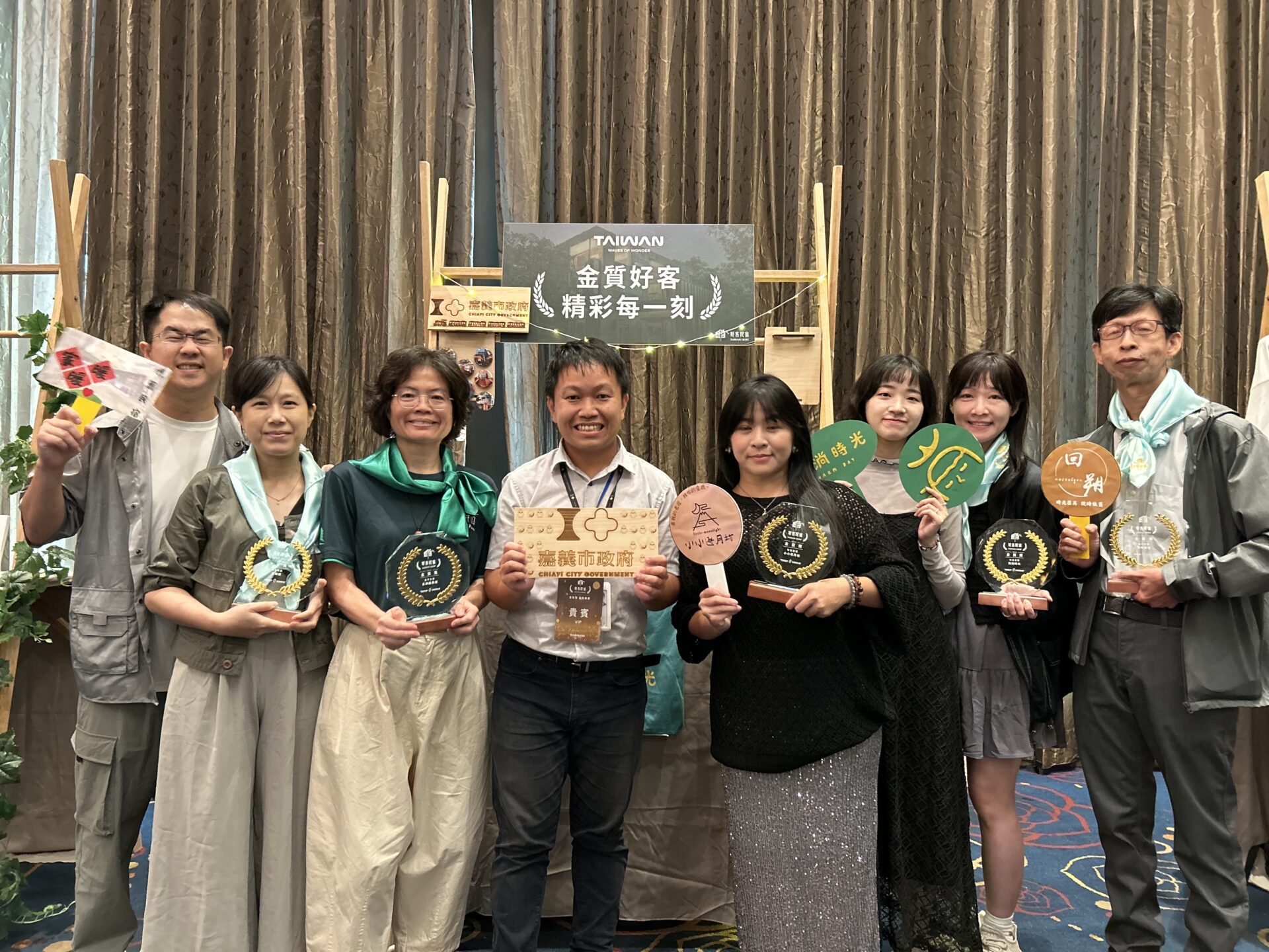 交通部觀光署為行銷「好客民宿」品牌,今年首次辦理「金質好客民宿」徵選活動,吸引全臺各縣市「好客民宿」業者踴躍報名。經人氣票選及專家審查,嘉義市共有五柳園民宿、家暖暖、淌淌時光、小小逐月坊及回朔民宿等5家業者參選並全數獲獎,今(8)日交通部觀光署舉辦頒獎典禮,嘉義市5家獲選民宿業者也都出席領獎,感謝民眾票選支持及評審信任。嘉義市長黃敏惠表示,未來將持續透過十大旗艦計畫「舊城創新生」,舊街區活化再生,打造更多值得國內外旅人一訪的優質品牌。