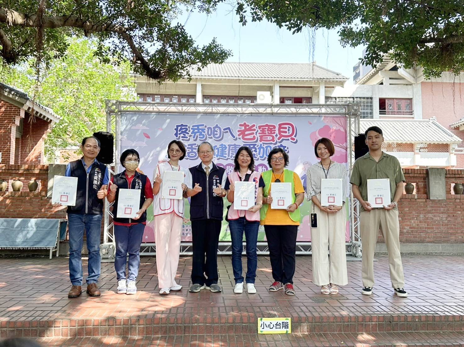 陳副局長頒發協辦團體感謝狀陳副局長表示,台中市65歲以上人口已突破46萬人,為增強長輩活力、延緩老化,長青服務中心開設20班各類運動課程,其中,中高齡肌力班、增肌燃脂有氧班、大型活動舞曲帶動班、正位瑜珈班等深受長輩喜愛,去年班班爆滿,今年服務人次可達3萬人次,陪伴長輩一起健康到老。
