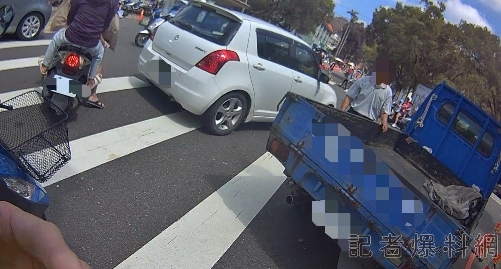 ▲一名茶博會攤商的貨車「刁車」在路口,慌忙向疏導交通的員警尋求協助。(圖/中興警分局提供)