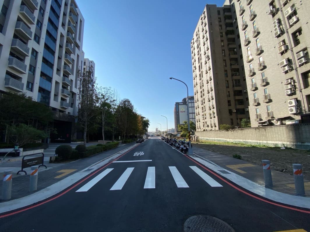 建設局說明,此工程開闢道路長約145公尺,寬度拓寬至12公尺,工程總經費為3億2,370萬元(含用地取得),為維護行人通行權益及便利性,已於道路兩側施作實體人行道供行人通行並考量地方社區有機車停車需求一併劃設機車格,工程順利於1月完工通車,完善地方交通路網,提升通行便利,促進地方發展,提供地方民眾一條安心回家的道路。