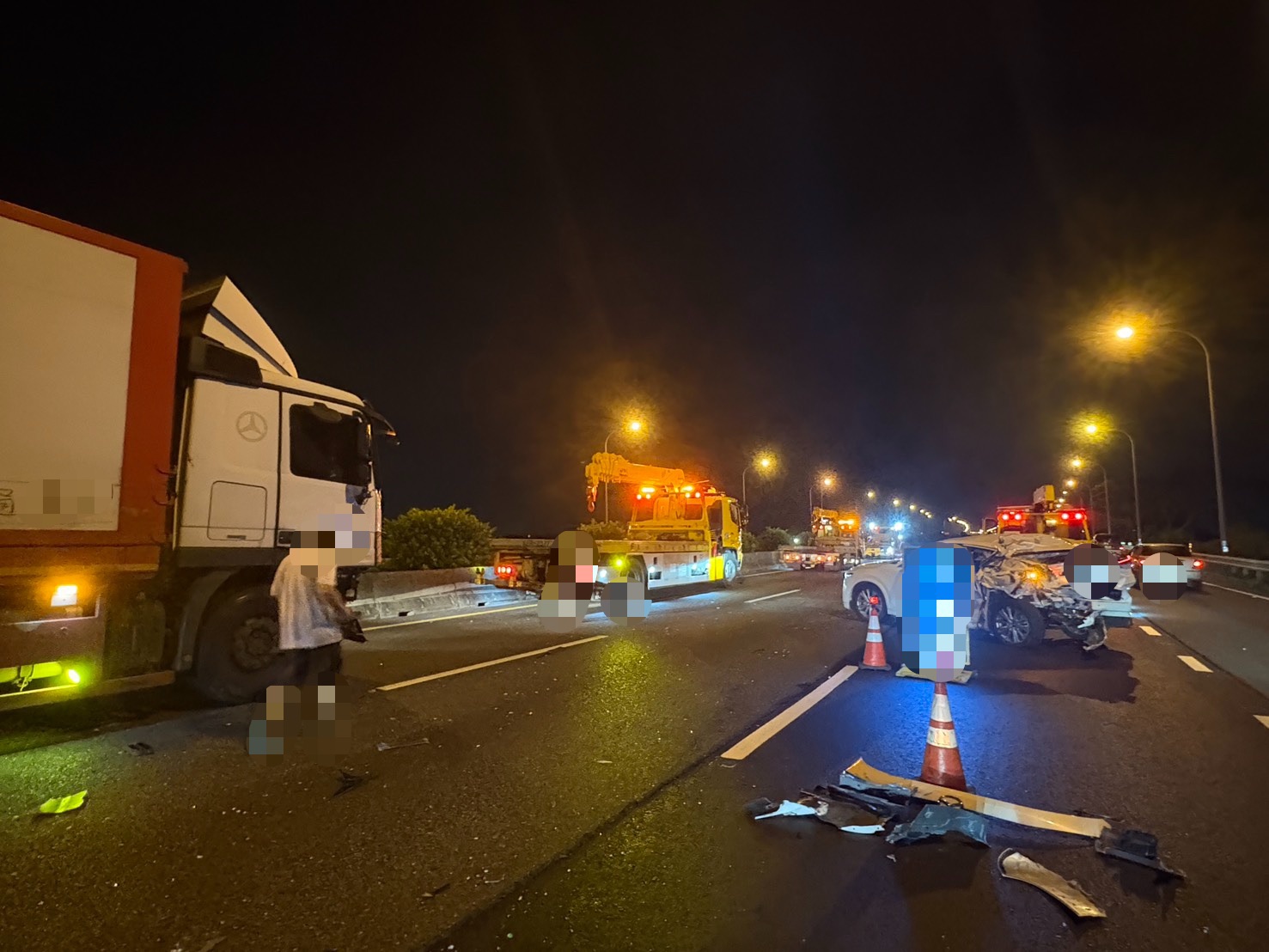 現場於23時28分排除,全線恢復通車,由國道警察第四大隊新市分隊依規定處理,各車駕駛人均無飲酒情形。國道警察第四大隊呼籲用路人,行車上路前務必養足精神,雙手握方向盤專注開車,注意自身精神狀況、勿疲勞駕駛,如有精神不濟之狀況,請盡速進入服務區或離開高速公路休息,以維自身及他人行車安全。