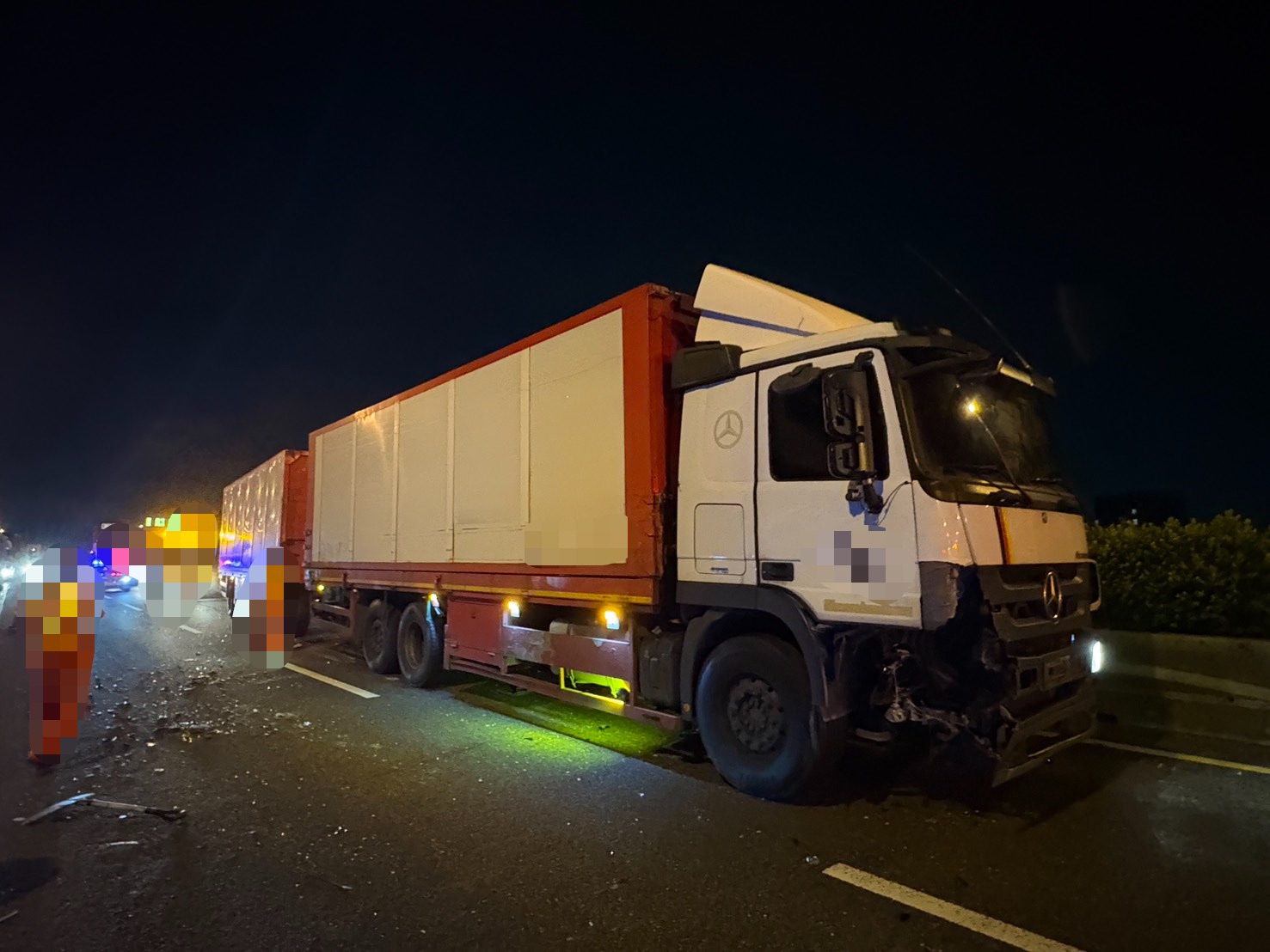 【賴傳媒、記者爆料網/周庭慶/台南報導】國道1號北向311.9公里台南安定路段昨(1)日晚間發生事故,35歲楊姓男子駕駛營業全聯結車,於22時43分行駛於國道1號北向311.9公里內側車道,疑因精神不濟操作不當,撞擊前方分別行駛於內側、中線車道之3部小車而肇事,造成2人受輕傷,送往麻豆新樓醫院診治。