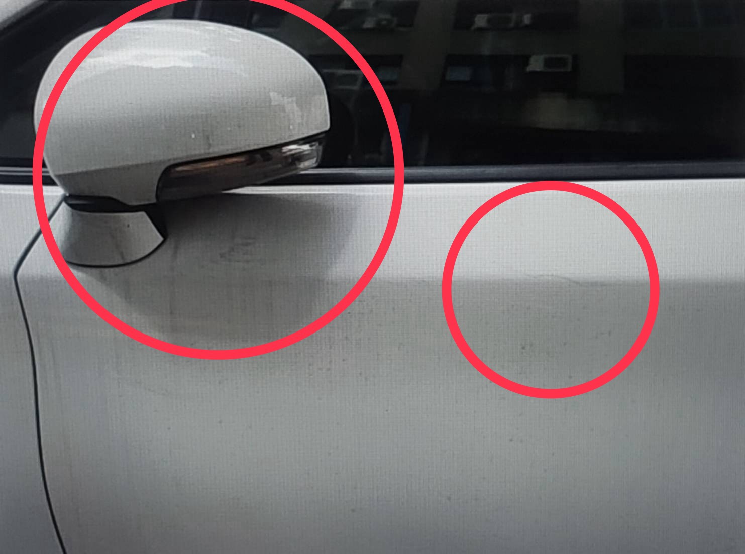 自小客車被U-bike撞擊造成毀損(紅圈處)。翻攝畫面