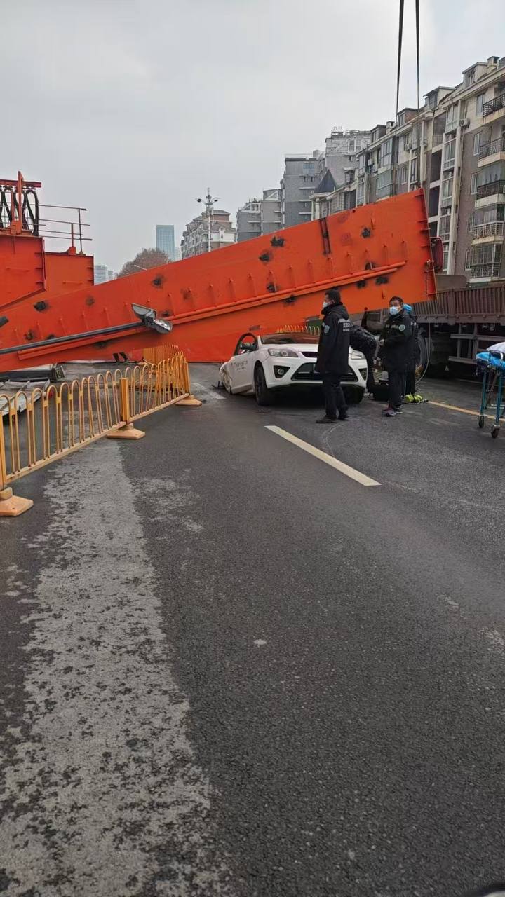 2月1日上午,中國湖北武漢後湖大道一地鐵工地起重機突然倒塌,2輛路過車輛受損,造成1人死亡、1人受傷。