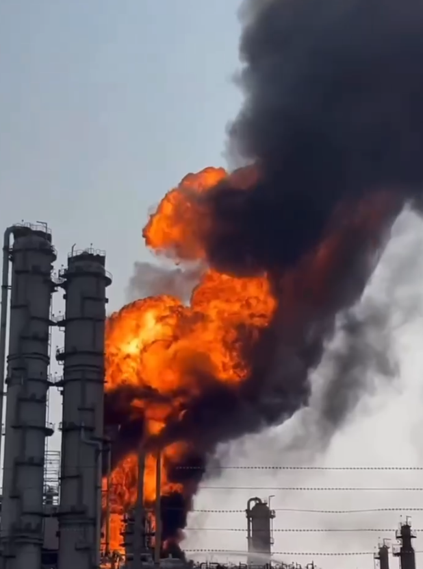 中油高雄大林廠火警烈焰濃煙沖天。翻攝畫面