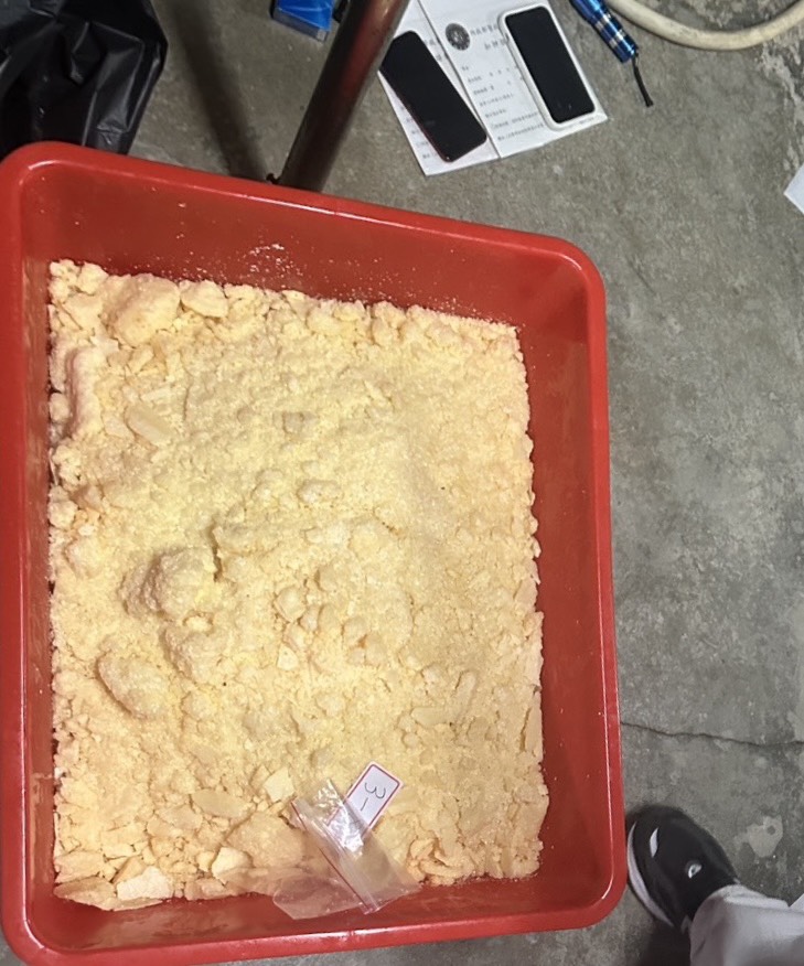 嫌犯見警方查緝立即逃竄,摸黑不顧崎嶇、危險的小路,與警方展開百米追逐,但警方已四路圍捕甕中捉鱉,查獲蔡姓製毒師及蔡姓共犯到案,偵破第四級毒品2-溴-4甲基苯丙酮製毒工廠(即製造第三級「喵喵」毒品之先驅原料),共查扣第四級毒品2-溴-4甲基苯丙酮、第四級毒品1-甲基苯基-1-丙酮、半成品及製毒化學原料共計逾55公斤。