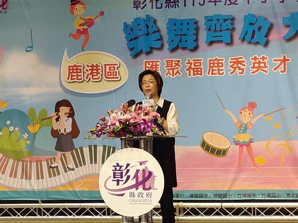 王縣長表示,本次展演內容豐富多元,涵蓋笛聲、弦樂、太鼓及武術等類型,學生們在舞台上自信展現學習成果,正是縣府長期推動「一校一社團」政策的具體展現。透過多元社團發展,讓孩子探索興趣、培養專長,進而建立自信,找到屬於自己的舞台。