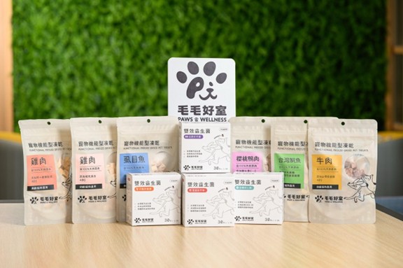以新品牌「毛毛好室」為例,主打台灣製造,聚焦日常健康保養需求,推出包含雙效益生菌、機能型凍乾等多元品項,為毛孩打造日常營養與機能兼具的健康方案。其中,雙效益生菌選用台灣複方益生菌,免疫款搭配澳洲原料褐藻醣膠與韓國黑酵母發酵粉等多重機能成分,並特別添加台灣土雞肉粉提升適口性,期望讓毛孩更願意吃,將有益成分自然帶入體內,達到長期穩定的保健效果。